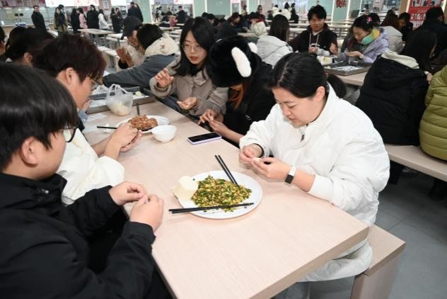咬开的是鲜香馅料,暖透的是师生情谊,笑声与交谈声交织成冬至最温柔的旋律。