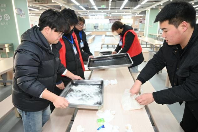 现场还设置了包饺子趣味比赛,各组师生默契配合,擀皮的速度与包馅的精巧程度 “齐头并进”,时不时传出 “这个饺子褶捏得真好看”“咱们组速度要追上啦” 的打趣声,连空气中都浸着热闹与亲昵。待饺子下锅、热气升腾,大家端着盛满饺子的餐盒围坐分享,席间还藏着惊喜,有幸运的师生咬到了包入硬币的饺子。后厨还贴心准备了热乎的紫菜蛋花汤,一口饺子一口汤,暖身又暖心。