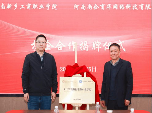 春和景明,聚力前行。3月25日下午,河南新乡工商职业学院与河南尚企育华网络科技有限公司共建产业学院签约暨揭牌仪式在教学楼7A212会议室隆重举行。此次签约揭牌,既是我校深化产教融合、精准对接数字产业发展需求的关键落子,也是校企双方携手赋能区域数字经济人才培养的务实之举。
